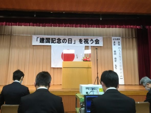 「建国記念の日」を祝う会本日、「建国記念の日」を祝う会の神戸会場、兵庫県民会館で式典に参加しました。 国家斉唱(拝聴)、橿原神宮遥拝、皇宮遥拝、建国の大詔(おおみことのり)と次第が続き、皆さんと建国の日をお祝いしました。 紀元節の歌(拝聴)後、…続きを読む