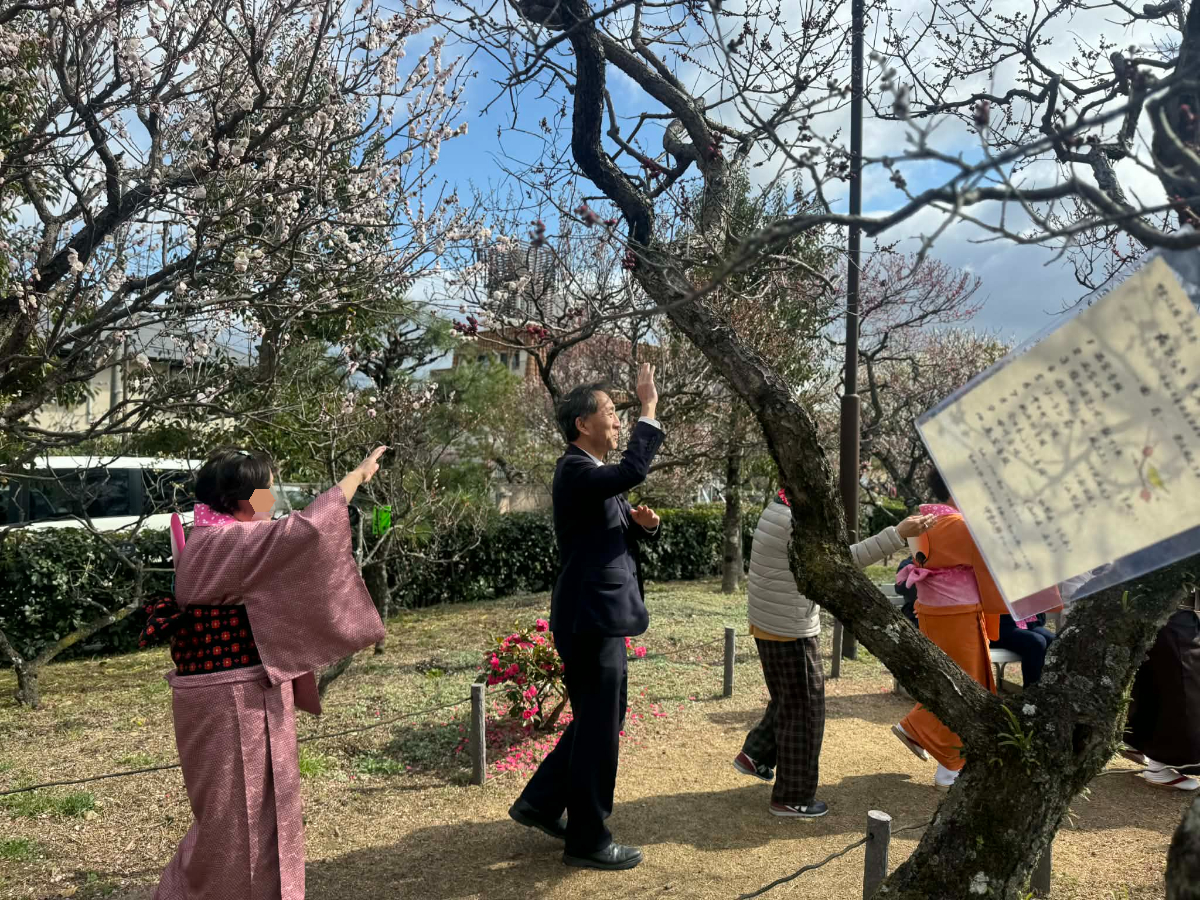 本日、甲東園にあります「甲東梅林」で民踊の集いが開催されました。小雨と風の天気となりましたが、梅林の中で皆さんと楽しく踊らせていただきました。