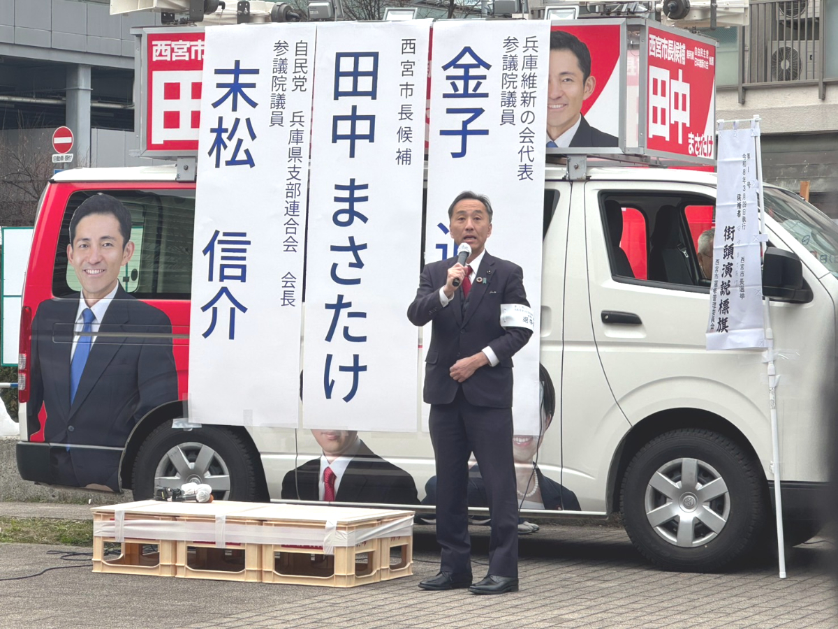 今回の市長選挙は、自民党・維新の会推薦で田中まさたけ候補、西宮市議会議員補欠選挙は、自民党公認で上谷ゆみ候補を応援しています。
